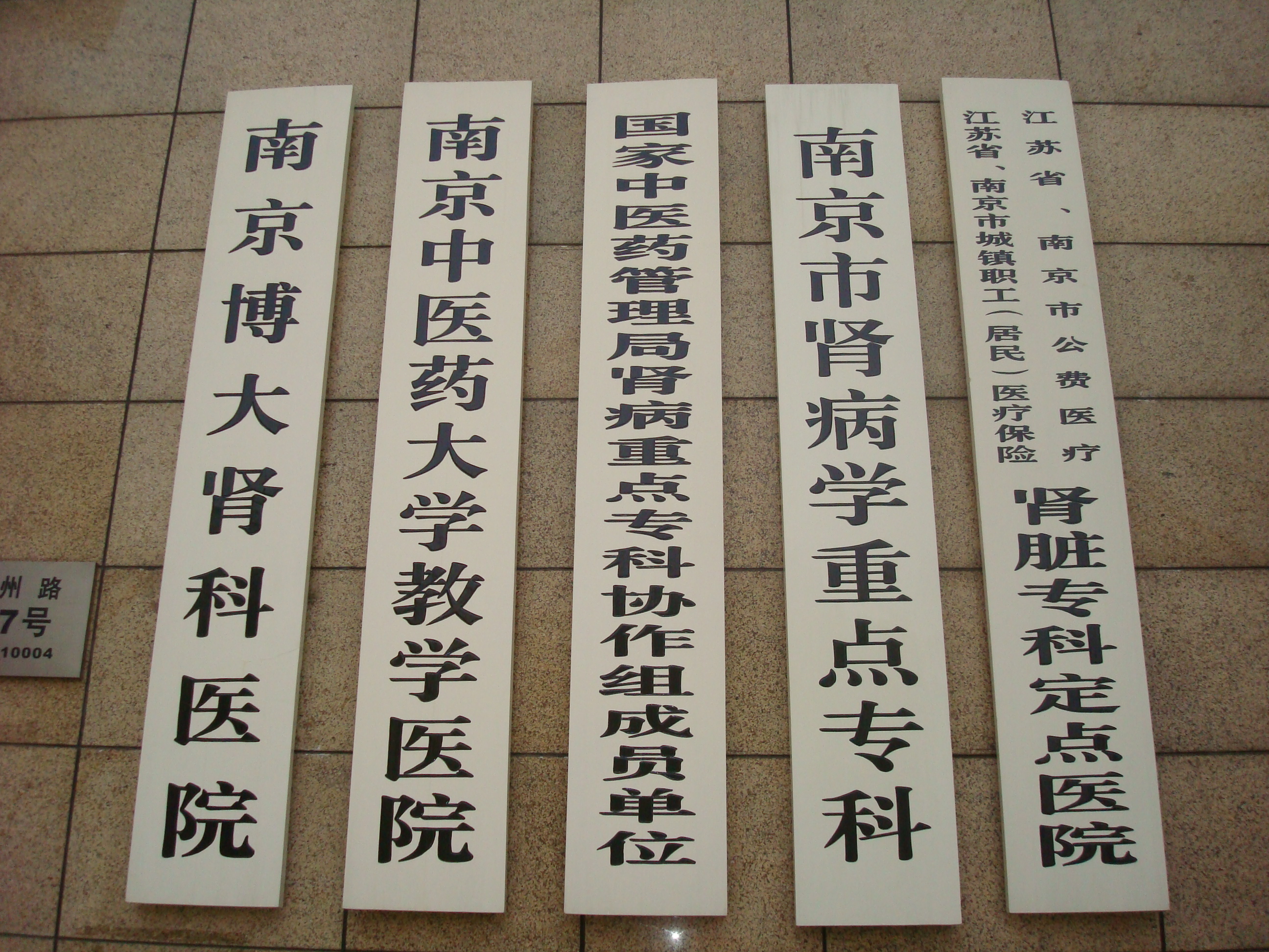 医院名匾 国家中医药管理局肾病重点专科协作组成员单位 南京中医药大学教学医院 南京市肾病学医学重点学科 江苏省公费、省医保定点肾脏病专科医院 南京市公费、市医保定点肾脏病专科医院 江苏省新型农村合作医疗定点肾脏病专科医院 企事业离退休干部医保定点肾脏病专科医院 南京市城镇居民医保定点肾脏病专科医院 南京市江宁区、六合区、浦口区医保定点肾脏病专科医院 |